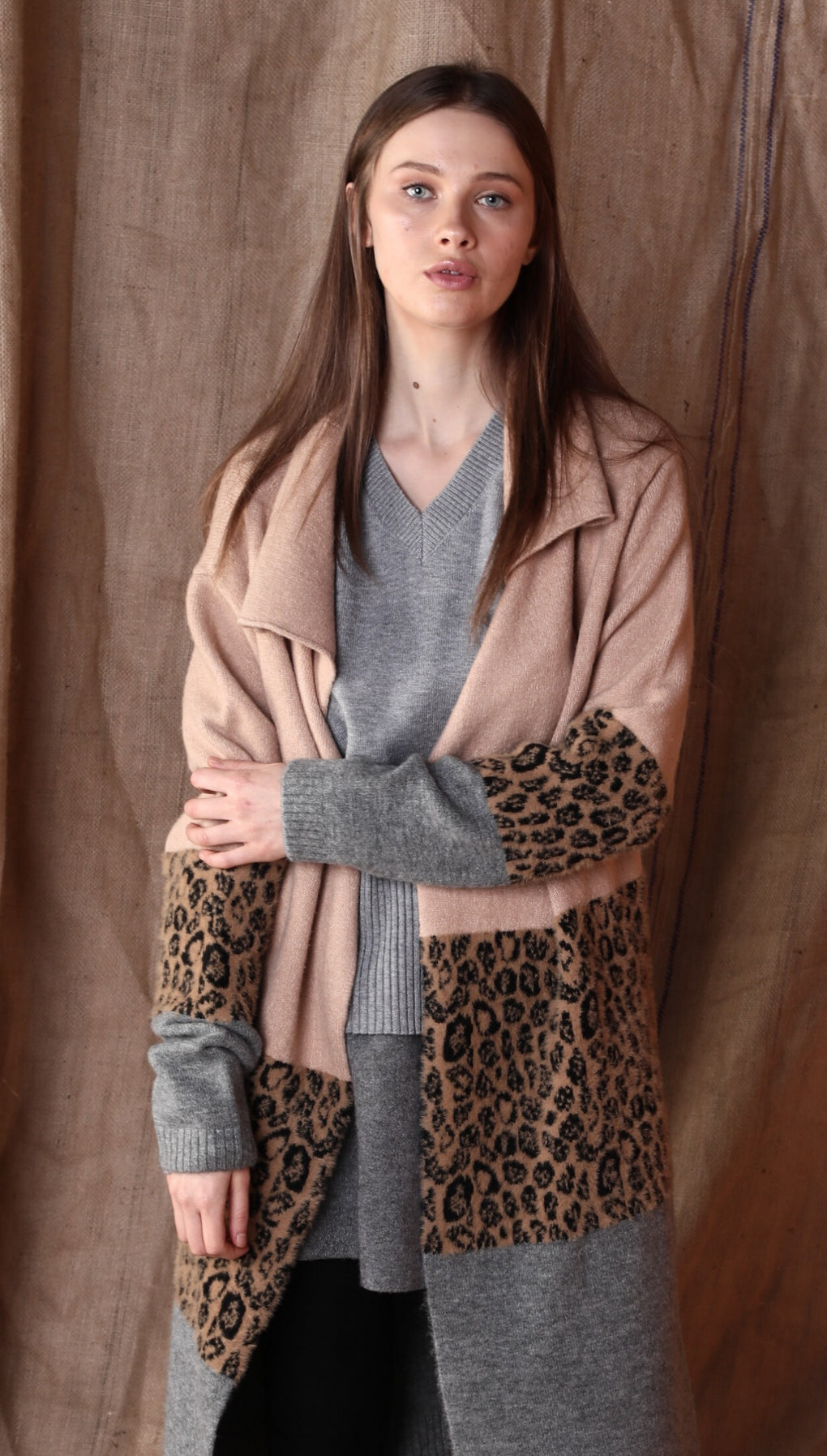 - Leopard Print Blocked Cardigan